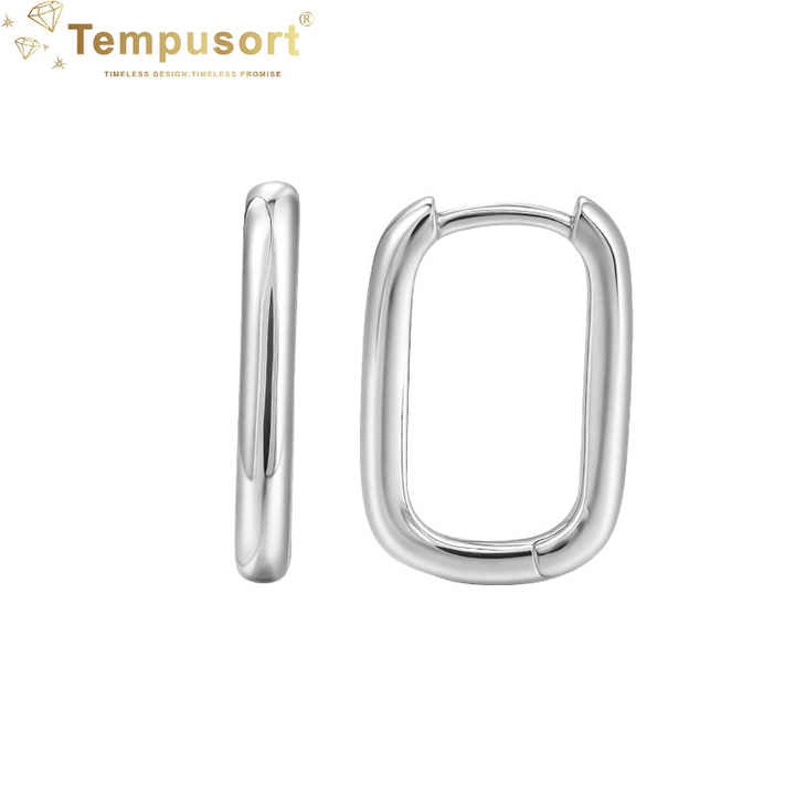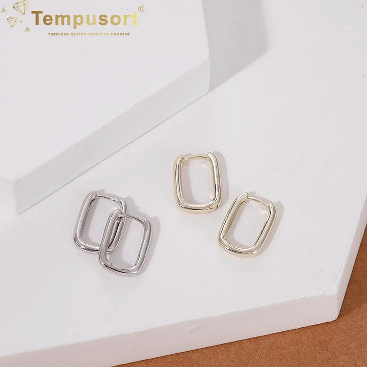 925 Sterling Silver Huggie Earrings Simple Geometric Square Shaped
