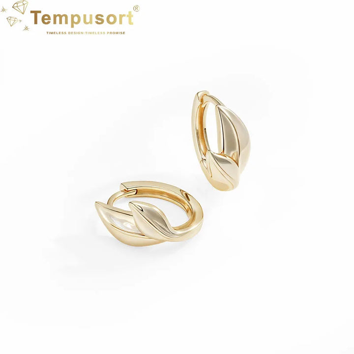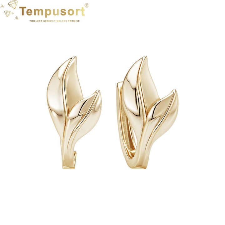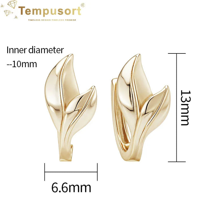 Ladies S925 14K Gold Plated Leaf Huggies Earrings