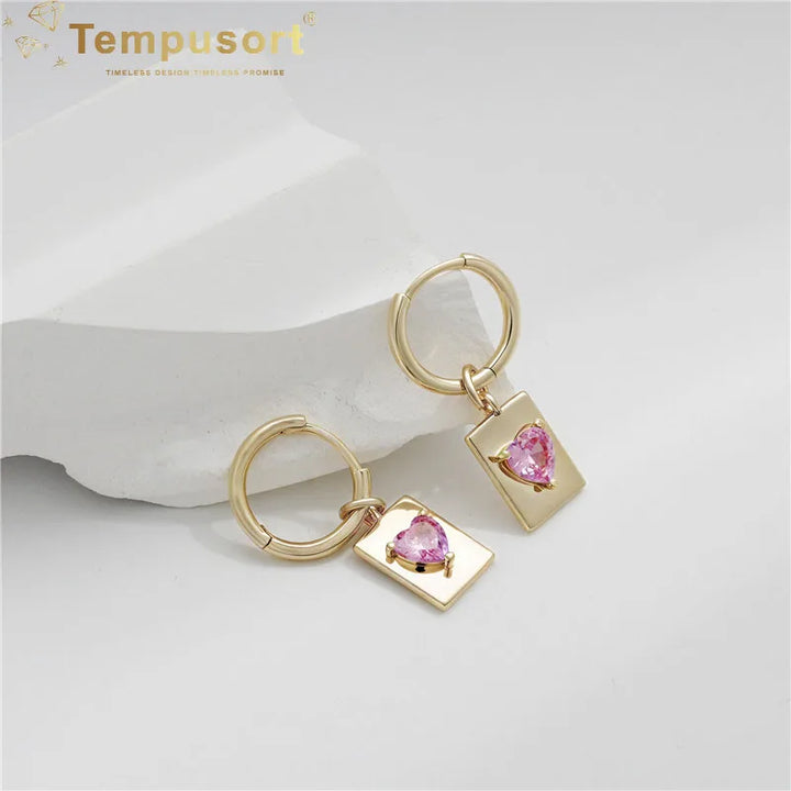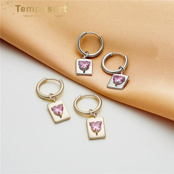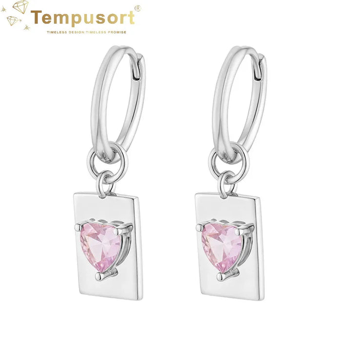 Rectangle 925 Silver Dangle Earrings Heart Zirconia