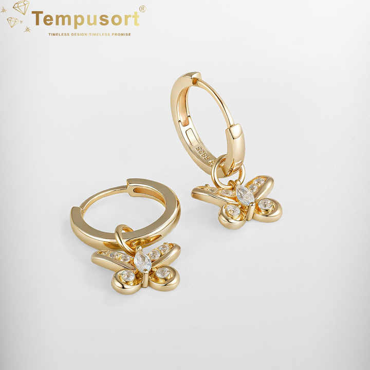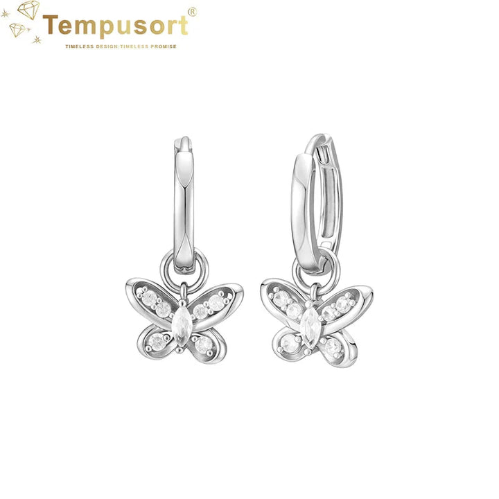 S925 Butterfly Charms Zirconia Dangle Earrings
