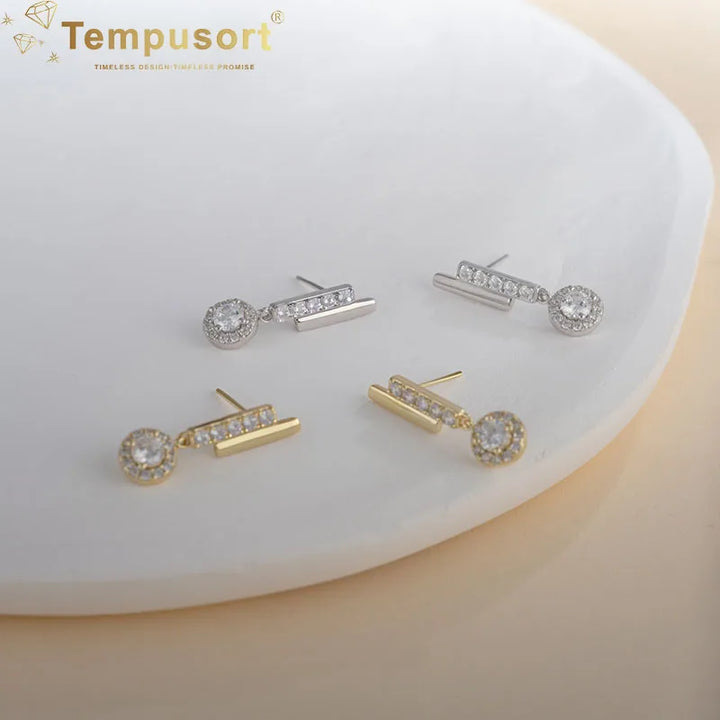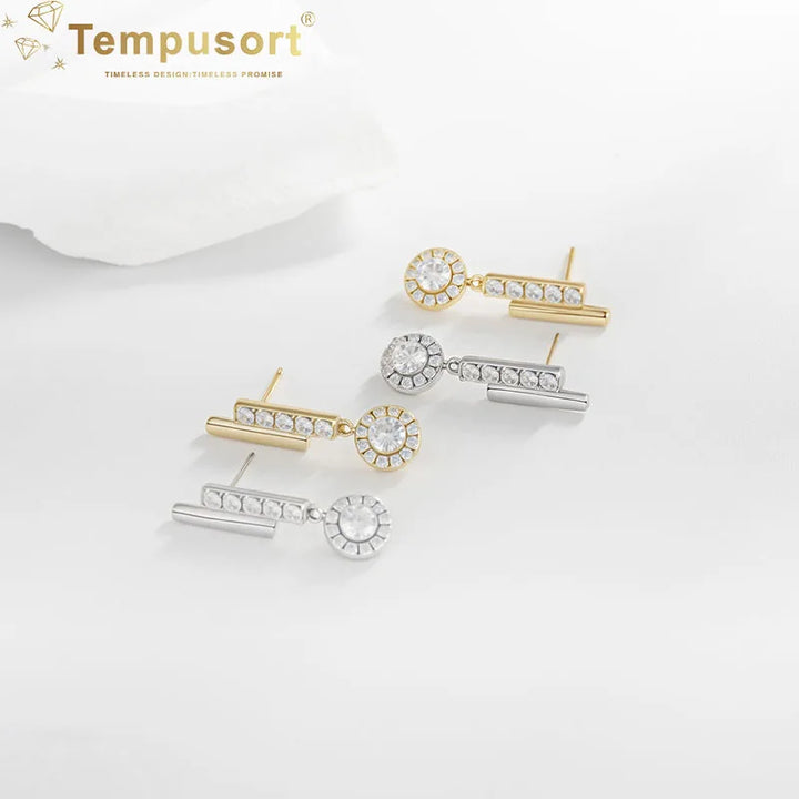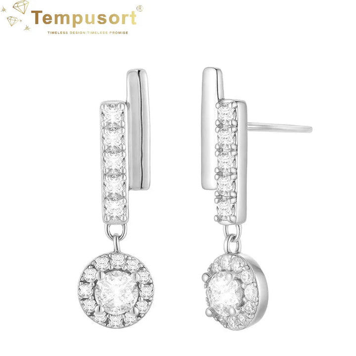S925 Round Zircon Dangle Earrings
